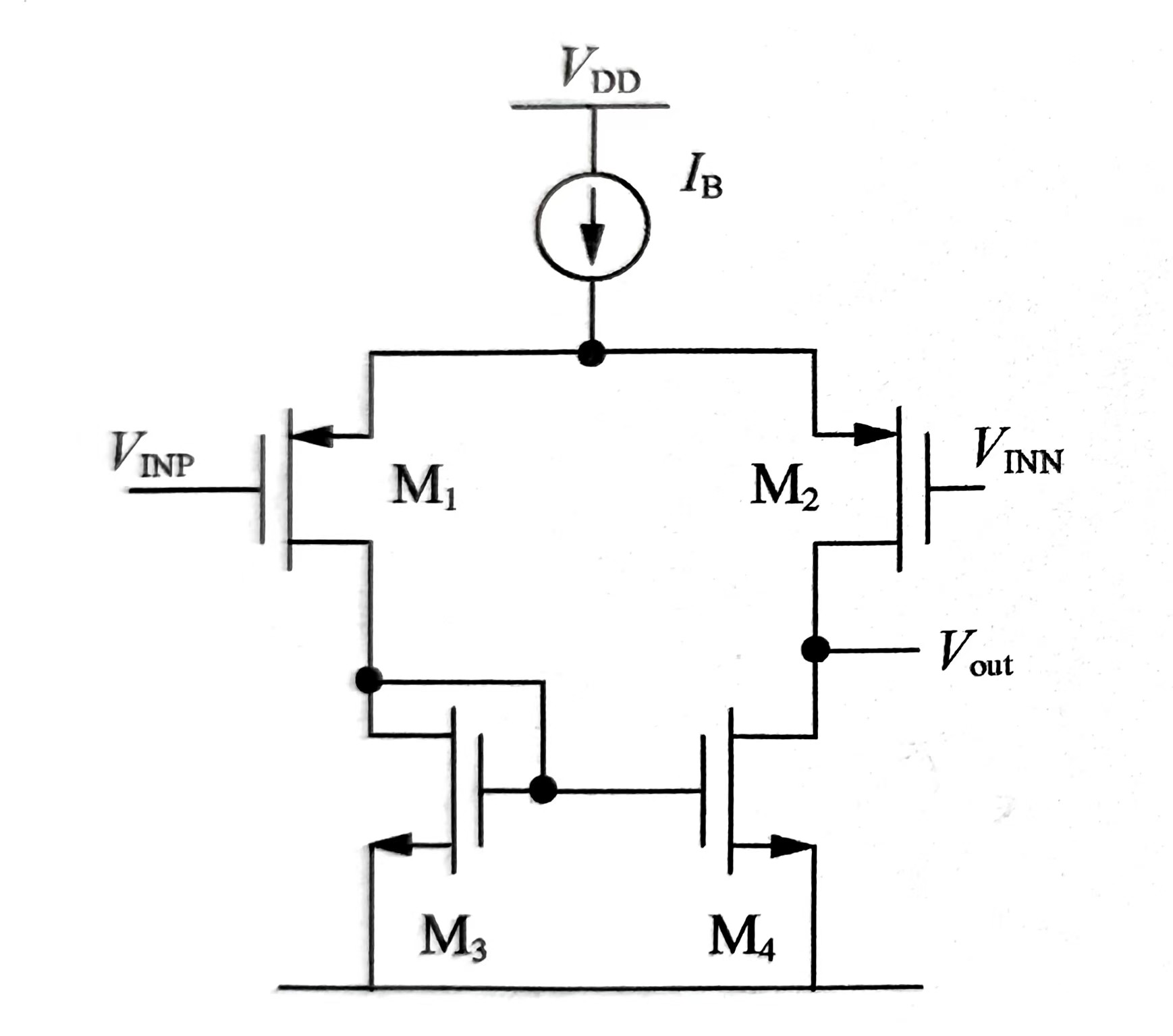 一个五管OTA如图1所示,共模电压为0.9V,设计晶体管的尺寸,使得电路的跨导\(g_m\)大于1\(mA/V\),通过优化晶体管尺寸使等效输入失调电压尽可能接近N(0,\((0.25mV)^2\))的正态分布。