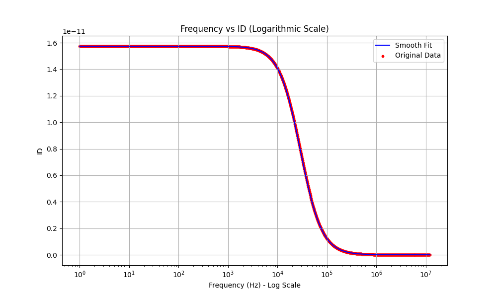 所以,对于式子\(\overline{V^2_{n,1/f,N}}=\frac{k_{F,N}}{C_{ox}WL}(\frac{1}{f})^{\alpha_{N}}\)拟合\({\alpha_{N}}\)时,选择从500Hz的频率开始。